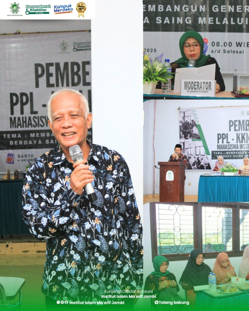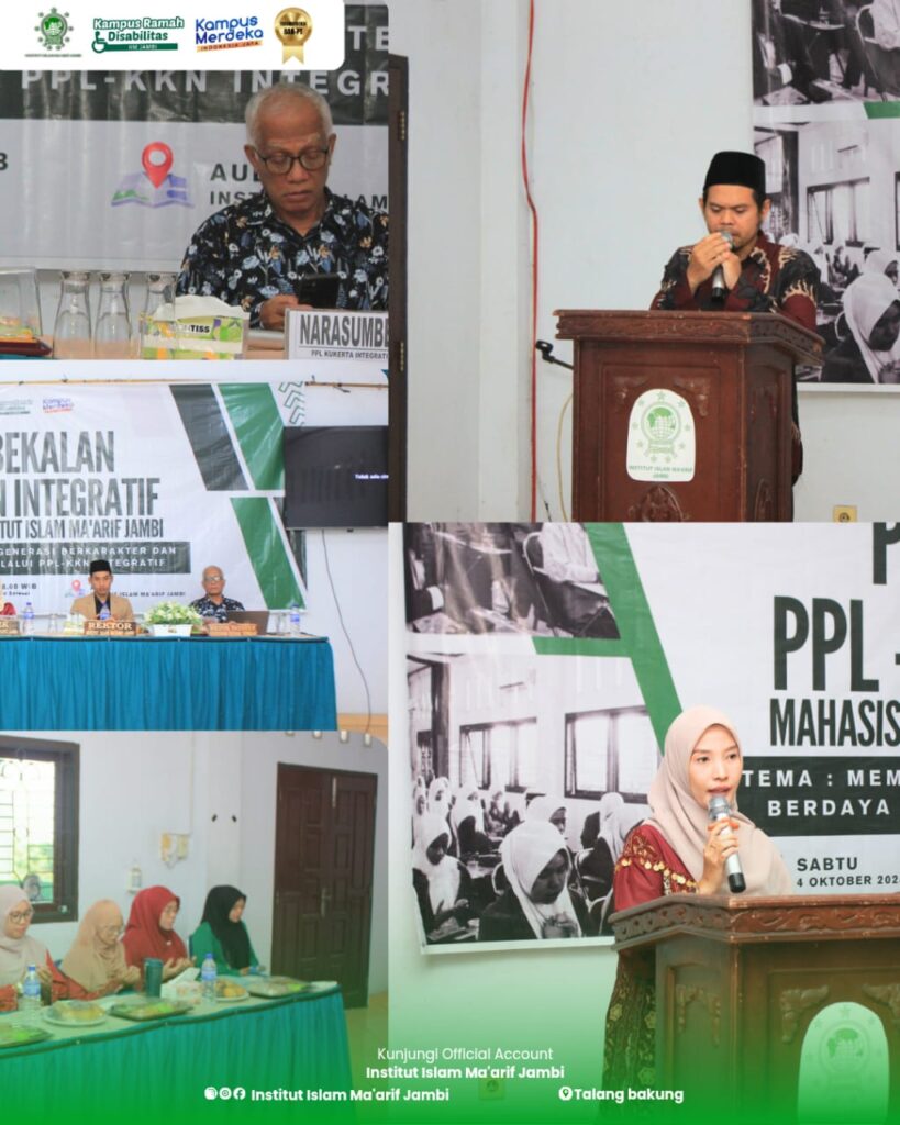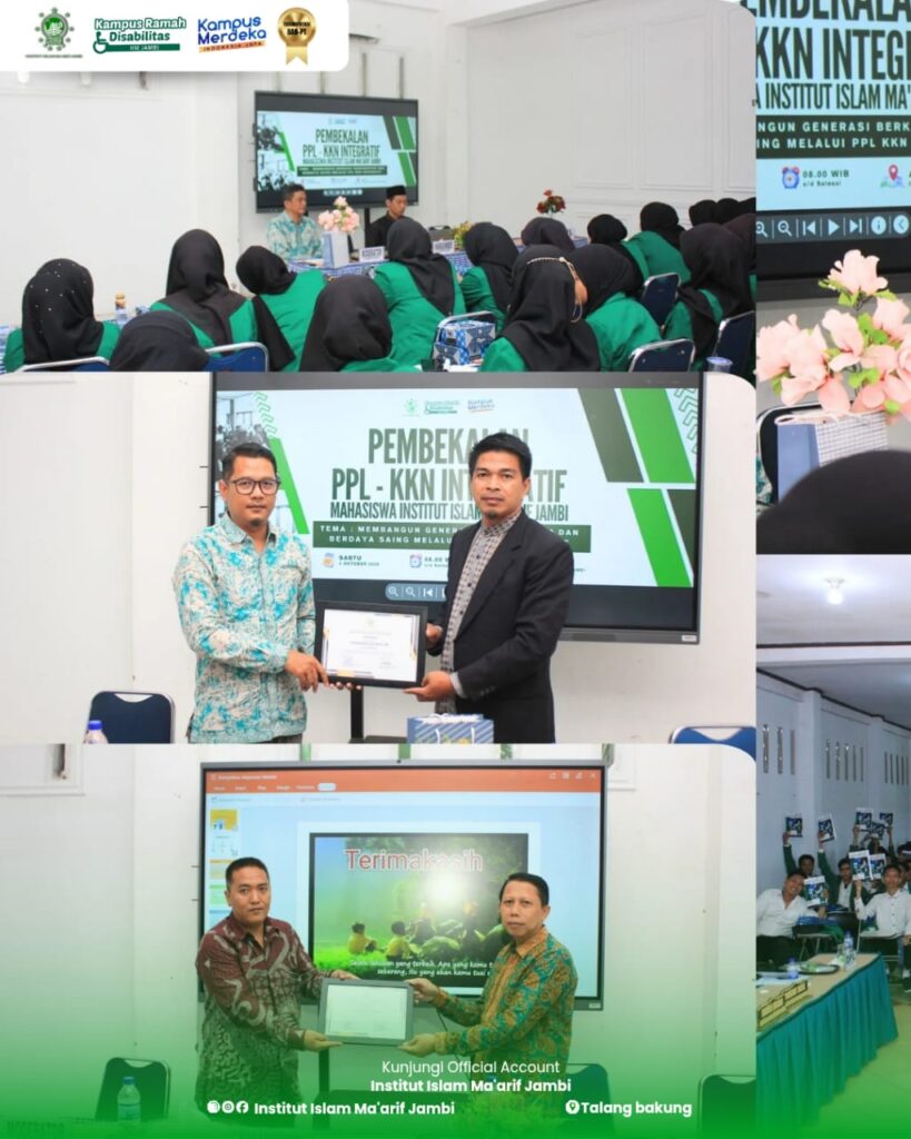 Institut Islam Ma’arif (IIM) Jambi melaksanakan kegiatan Pembekalan PPL dan KKN Integratif pada Sabtu, 4 Oktober 2025 dengan mengusung tema “Membangun Generasi Berkarakter dan Berdaya Saing melalui PPL dan KKN Integratif” yang diselenggarakan oleh ketua Lembaga Penelitian dan Pengabdian kepada Masyarakat (LP2M) IIM Jambi Ibu Latansa Hafizotun, M.Pd.I. Kegiatan ini dilaksanakan sebagai upaya memberikan arahan, pemahaman, dan bekal kepada mahasiswa sebelum terjun langsung dalam pelaksanaan PPL (Praktik Pengalaman Lapangan) dan KKN (Kuliah Kerja Nyata) Integratif.