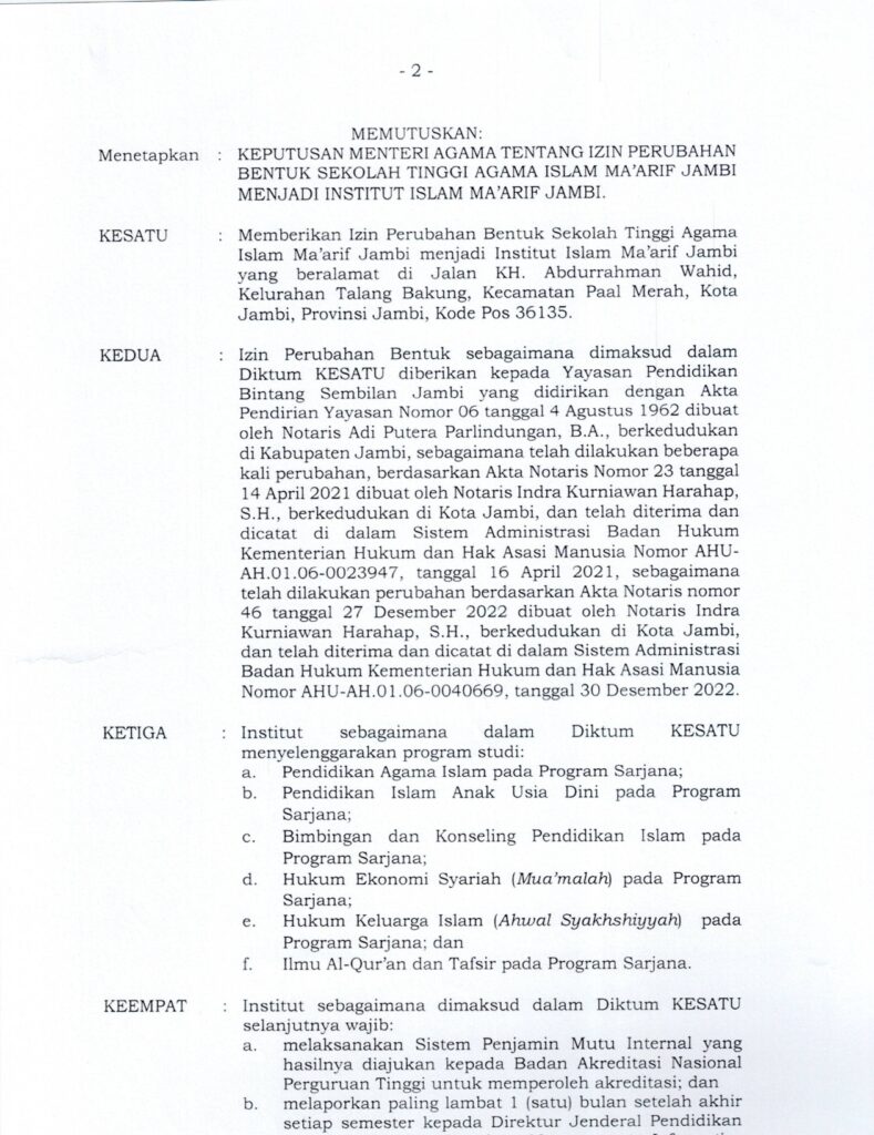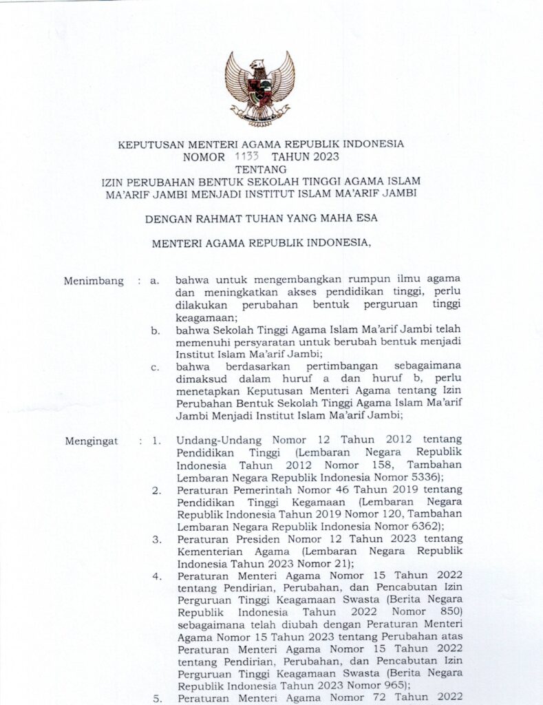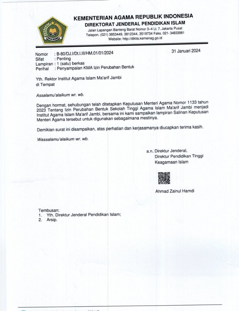 Pengumuman Surat Keputusan Perubahan Alih Status Sekolah Tinggi Agama Islam Ma’arif Jambi menjadi Institut Islam Ma’arif Jambi October 22, 2025October 22, 2025 admin 0 Comments